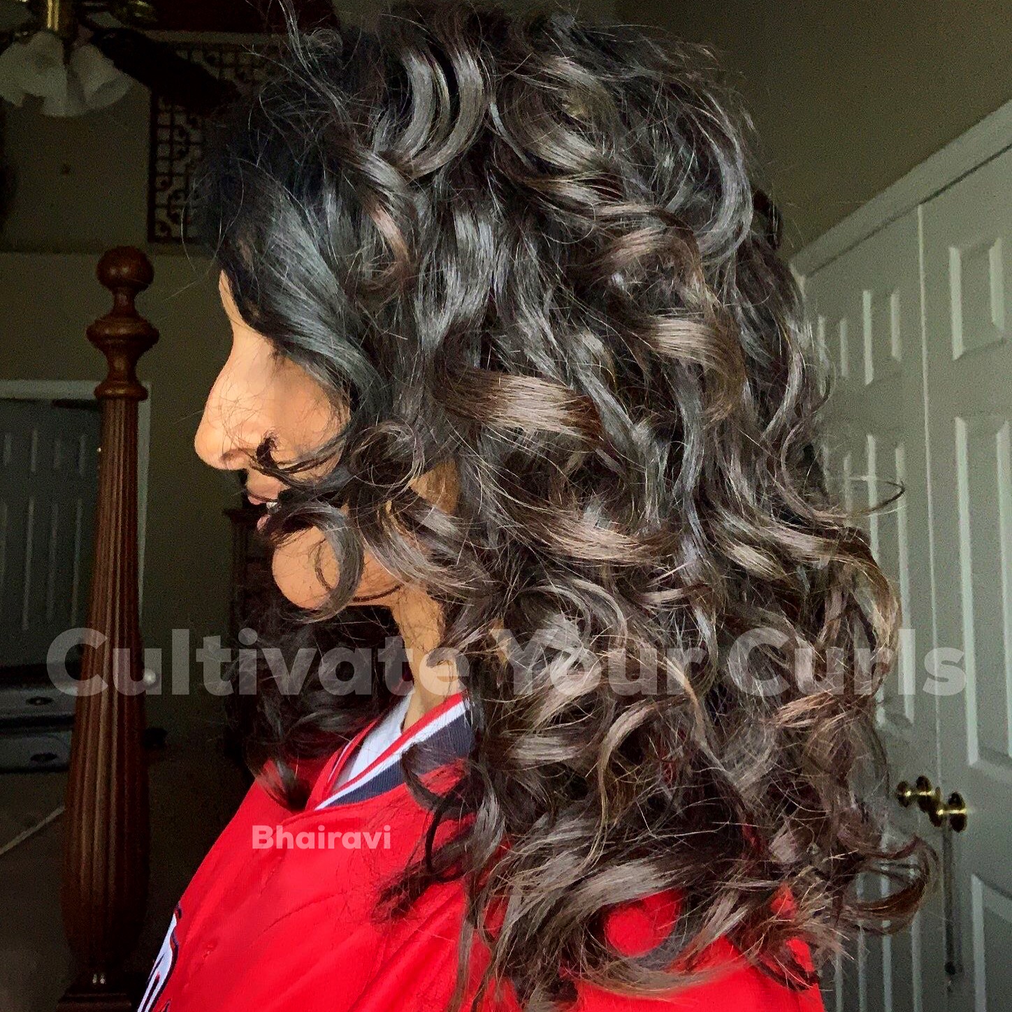 I teach that this is not 'dysfunctional frizz' but a perspective shift of appreciating what you have to give you more of what you want - as it is about impossible to have definition and volume. You kill volume when you want definition so you must learn to embrace Functional Frizz. Look at how beautiful Bhairavi's hair is: